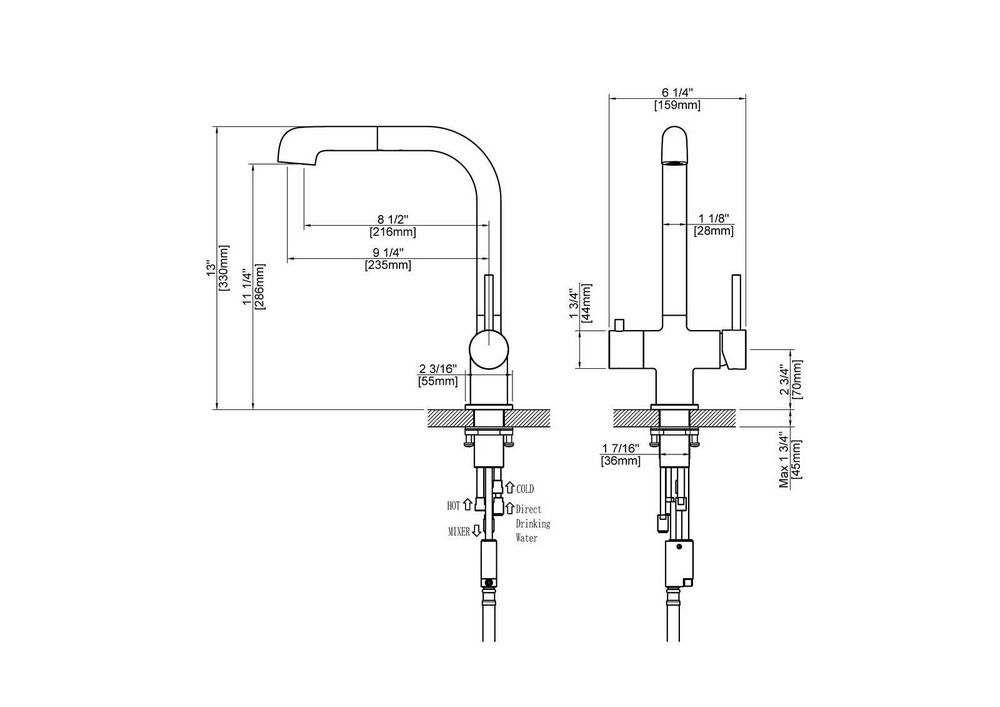 | Особенности | Поворотный излив/ выдвижная лейка/ под фильтр |