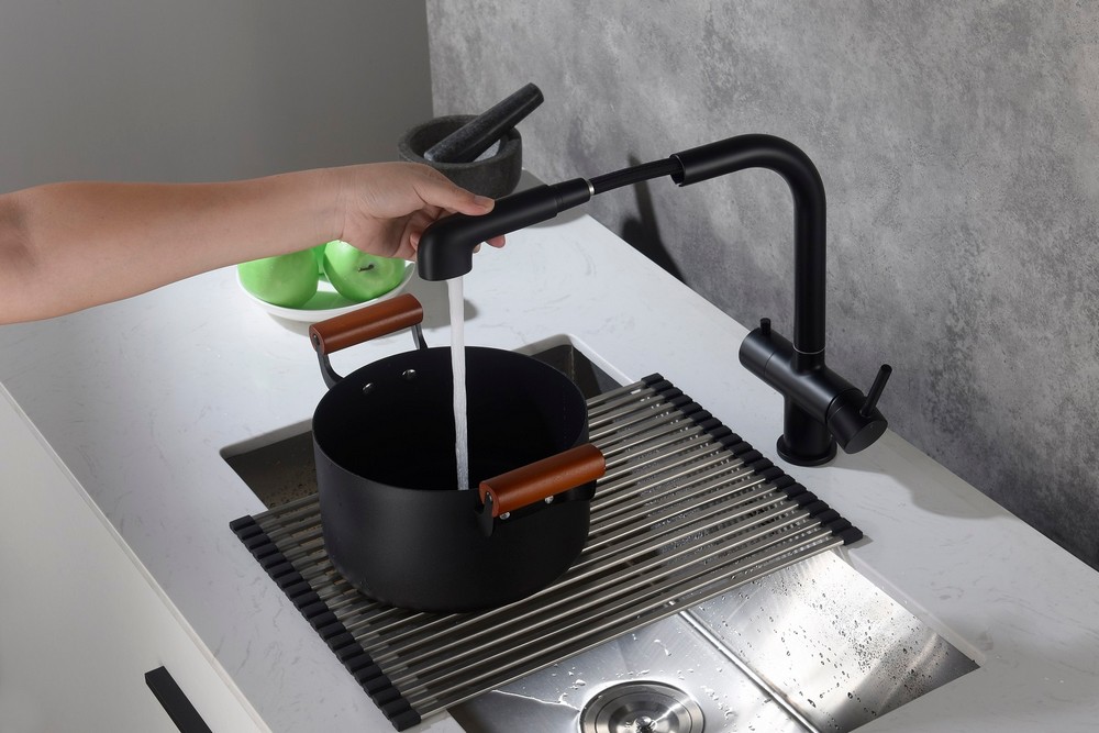 - Смеситель под фильтр с выдвижной лейкой Timo Saona черный матовый 2346/03FL