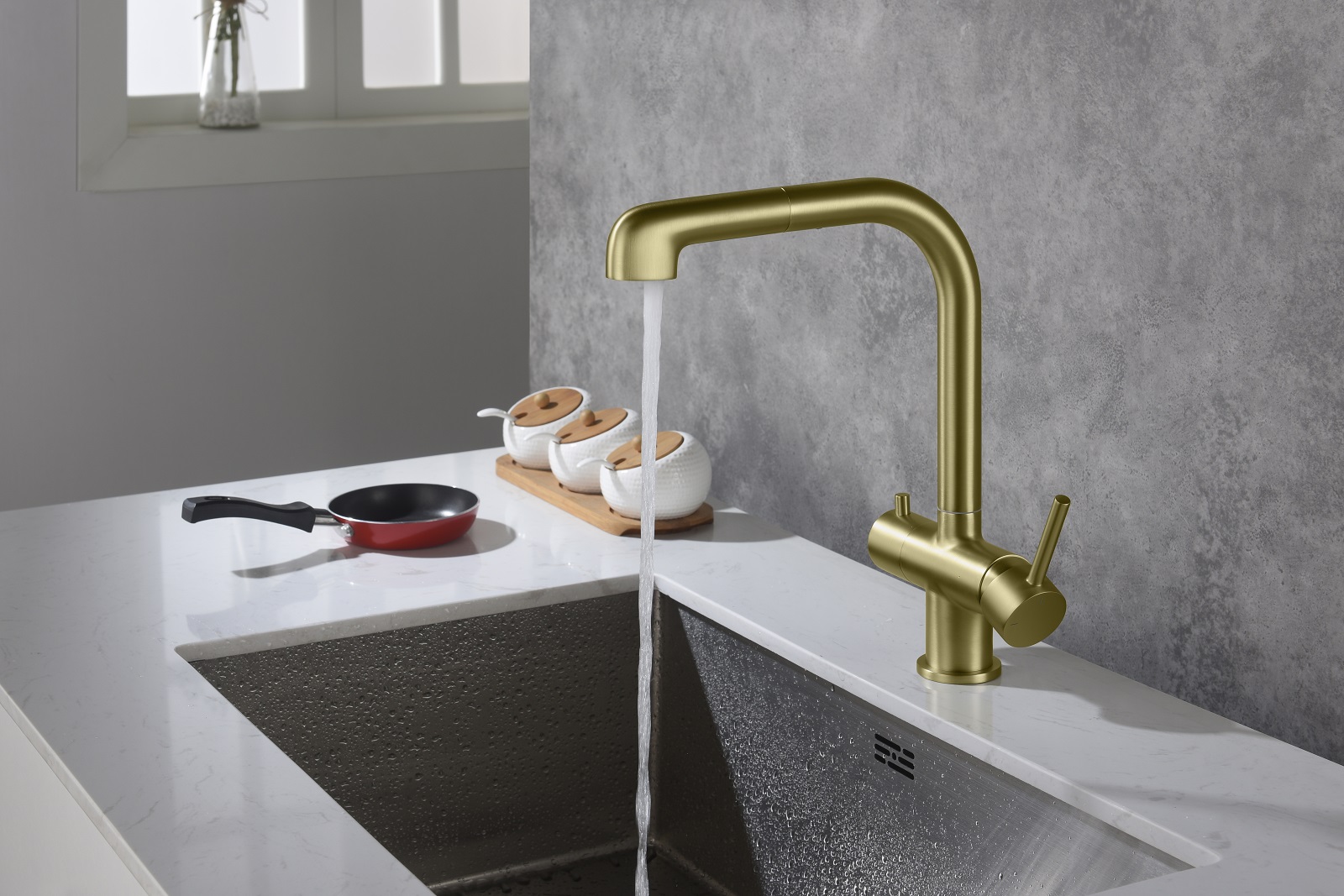 Смеситель под фильтр с выдвижной лейкой Timo Saona золото матовое 2346/17FL