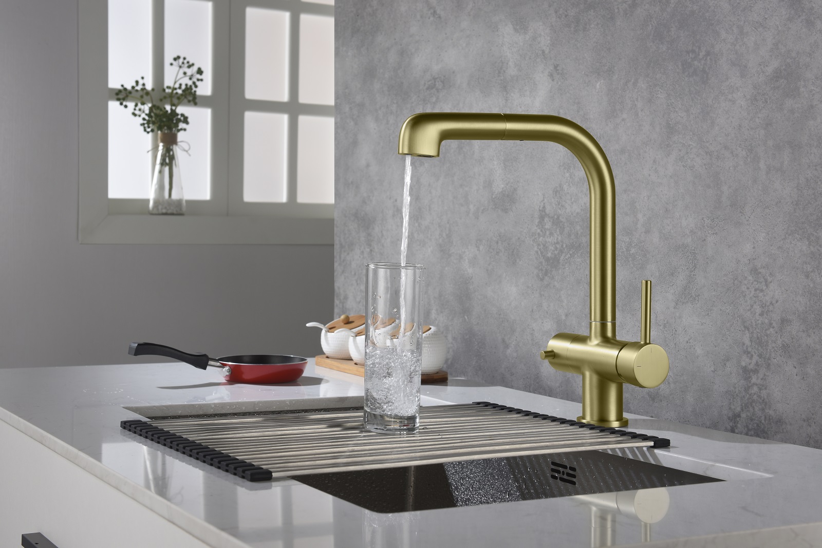 - Смеситель под фильтр с выдвижной лейкой Timo Saona золото матовое 2346/17FL