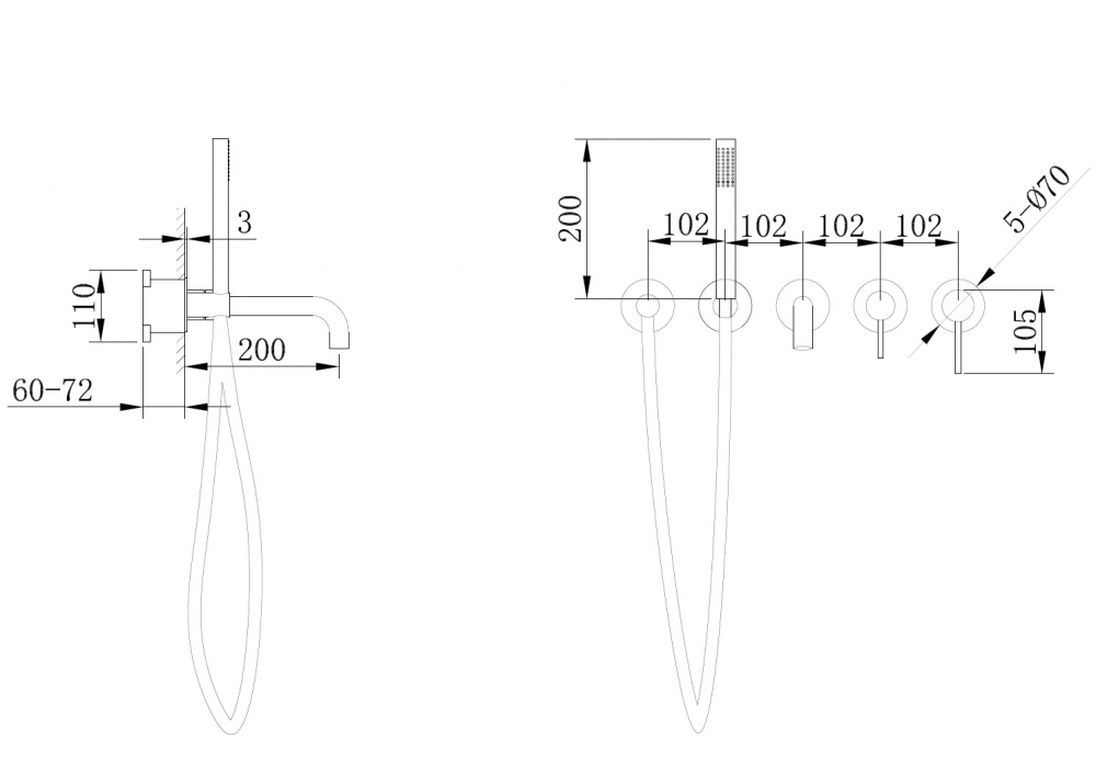 Смеситель для ванны скрытого монтажа Abber Wasser Kreis черный матовый AF8130B
