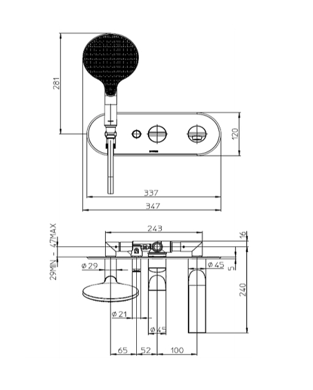 -Ручной душ APICE на фиксированном держателе (56 мм х 140 мм х 277 мм)