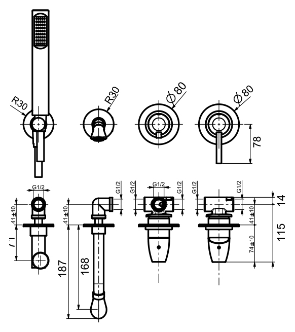 Комплектация: смеситель, лейка, шланг, шланговое подключение, излив, девиатор