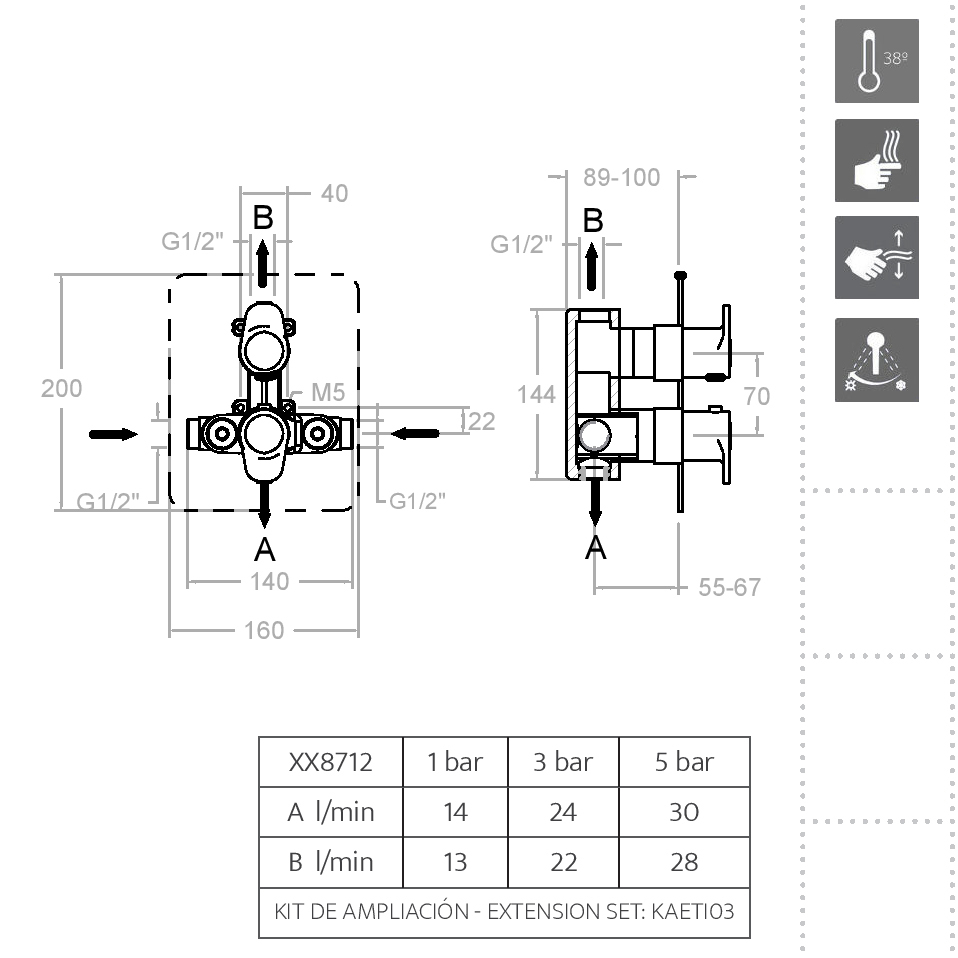 Серия имеет системы экономии воды и энергосбережения, эффективную комбинацию, которая включает в себя открывание в положении холодной воды и ступенчатое открытие крана в две фазы. Таким образом, системы холодного открывания предотвращают излишнее потребление горячей воды с соответствующей экономией энергии и заботой об окружающей среде.