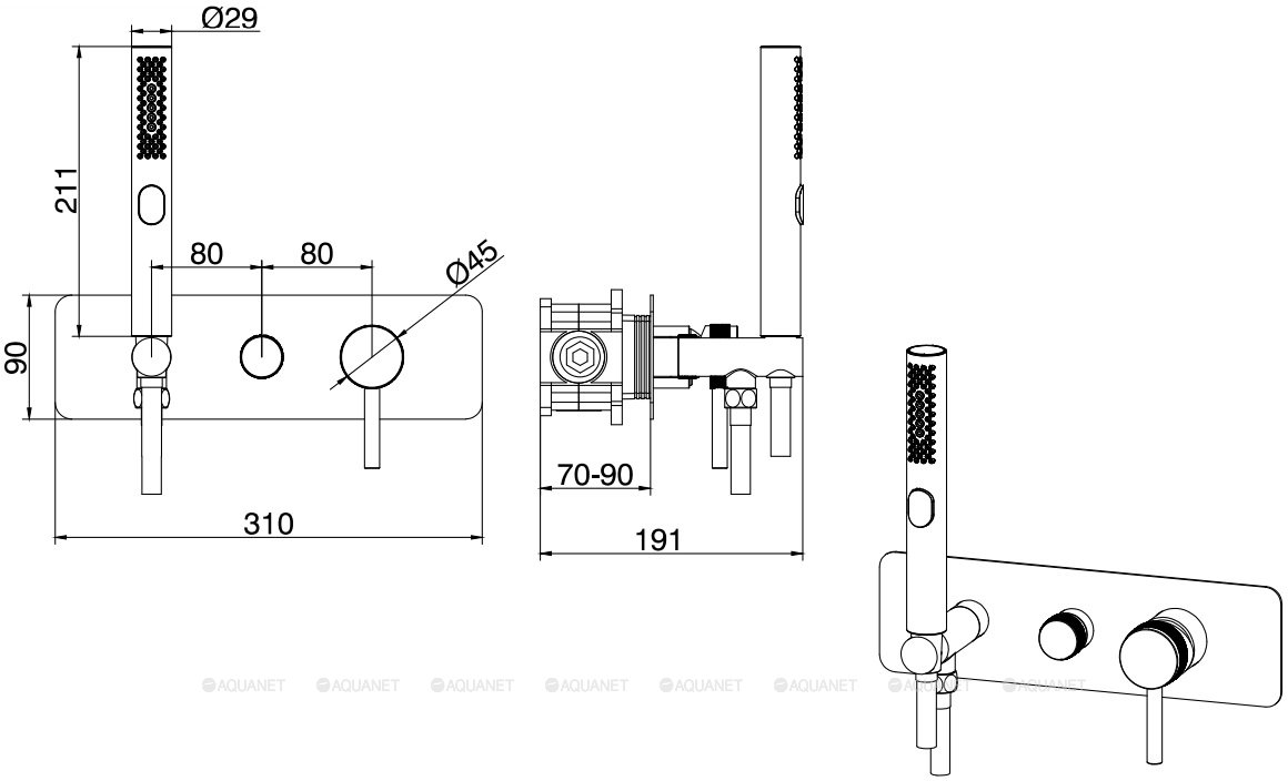 | В комплекте | Скрытая часть/ душ ABS 3 режима/ шланг 1,5м/ держатель |