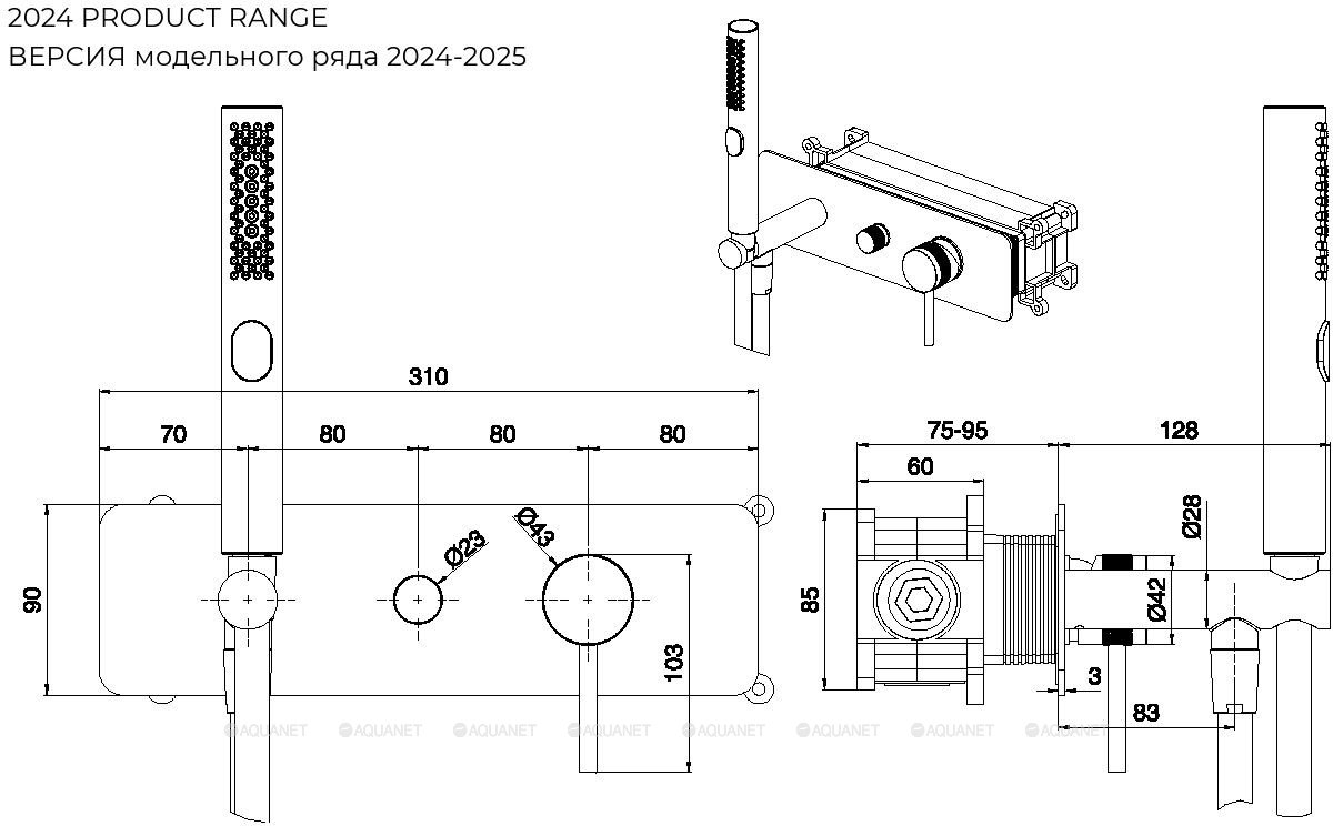 | В комплекте | Скрытая часть/ душ ABS 3 режима/ шланг 1,5м/ держатель |