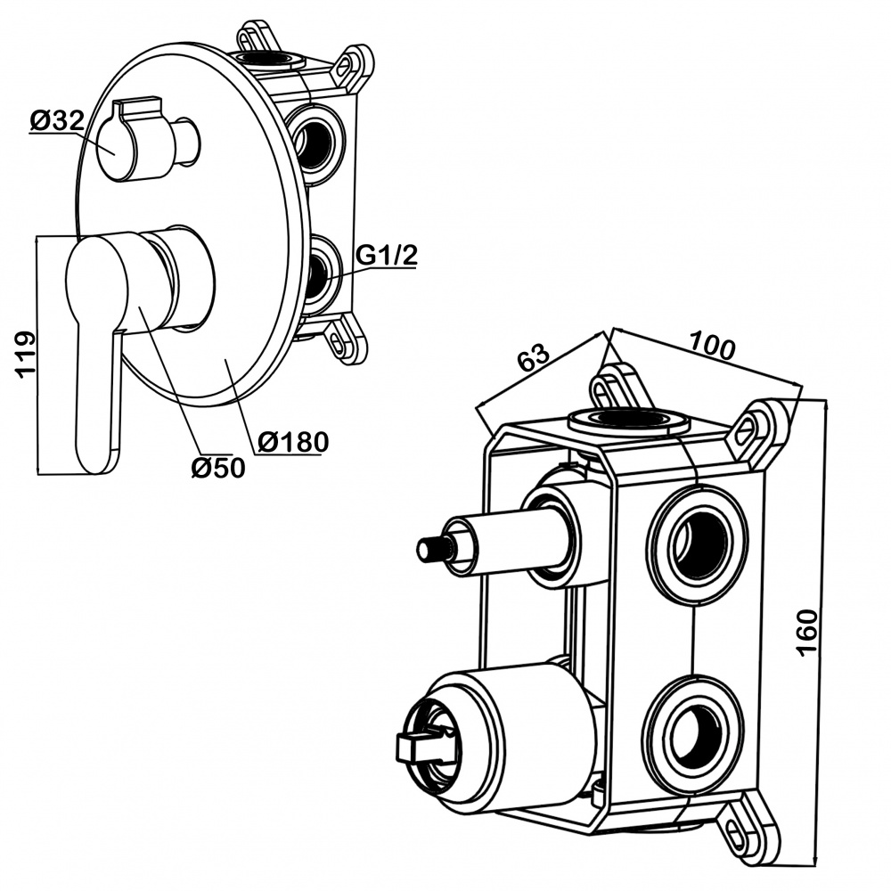 Встраиваемый смеситель для душа Swedbe Platta 5521 (на 3 выхода)