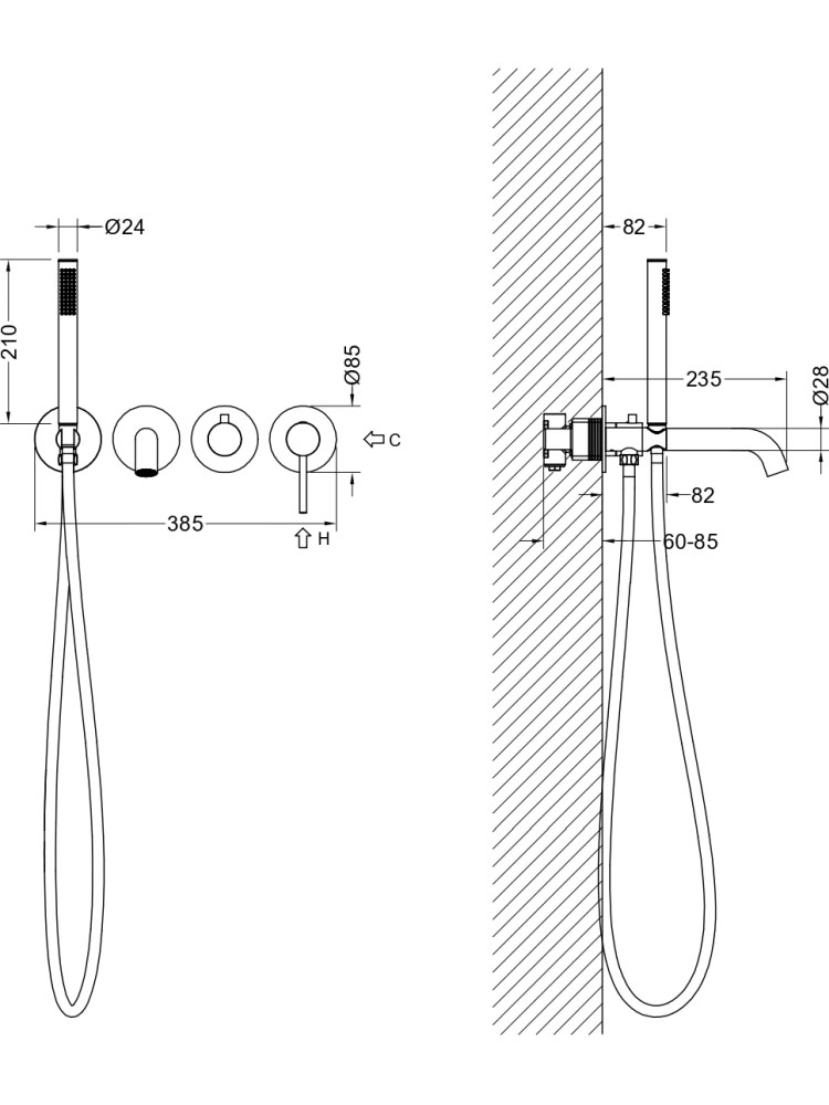 | В комплекте | Смеситель (внешняя и скрытая часть), аэратор, дивертор, лейка, шланг 1,5 м, декоративная накладка |