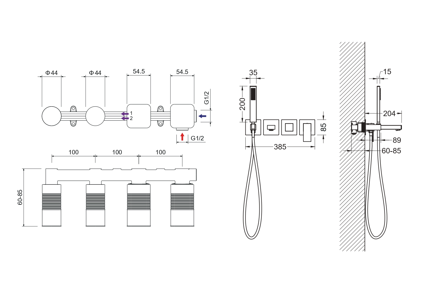 | В комплекте | Смеситель внешняя и скрытая часть, дивертор, лейка, шланг 1,5 м |