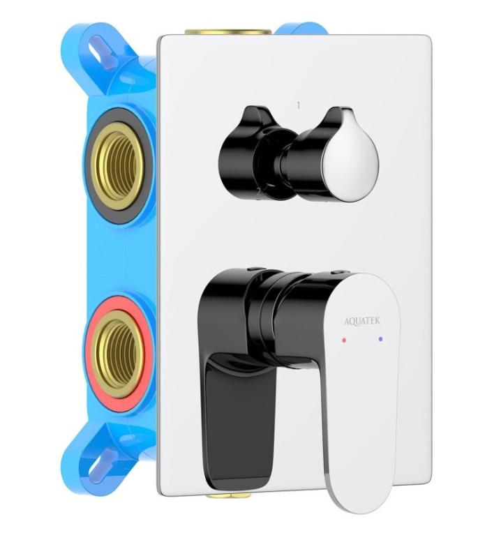 - Встраиваемый смеситель для ванны Акватек Оберон 3 режима хром AQ1247CR