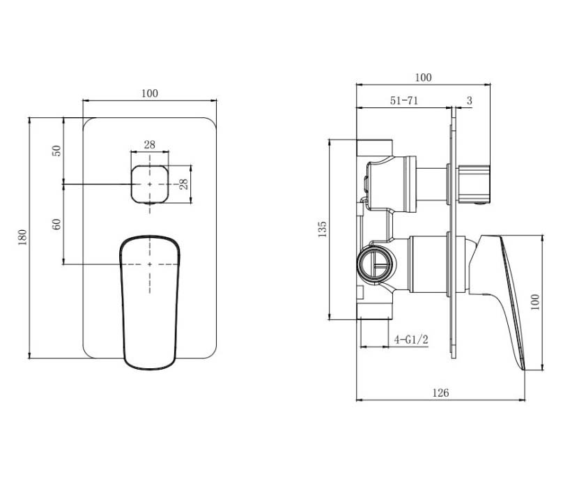 - Встраиваемый смеситель для ванны Акватек Вега черный матовый AQ1046MB