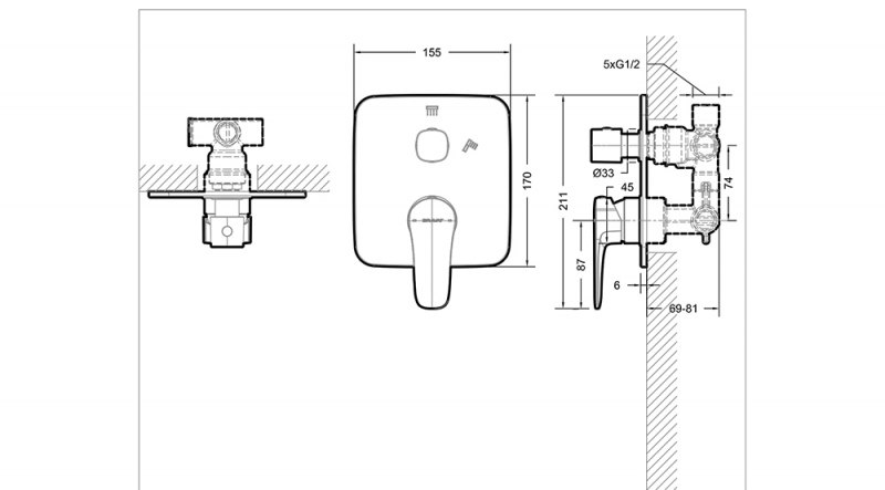 Встраиваемый смеситель для ванны/душа Bravat Source PB8173218CP-2-ENG