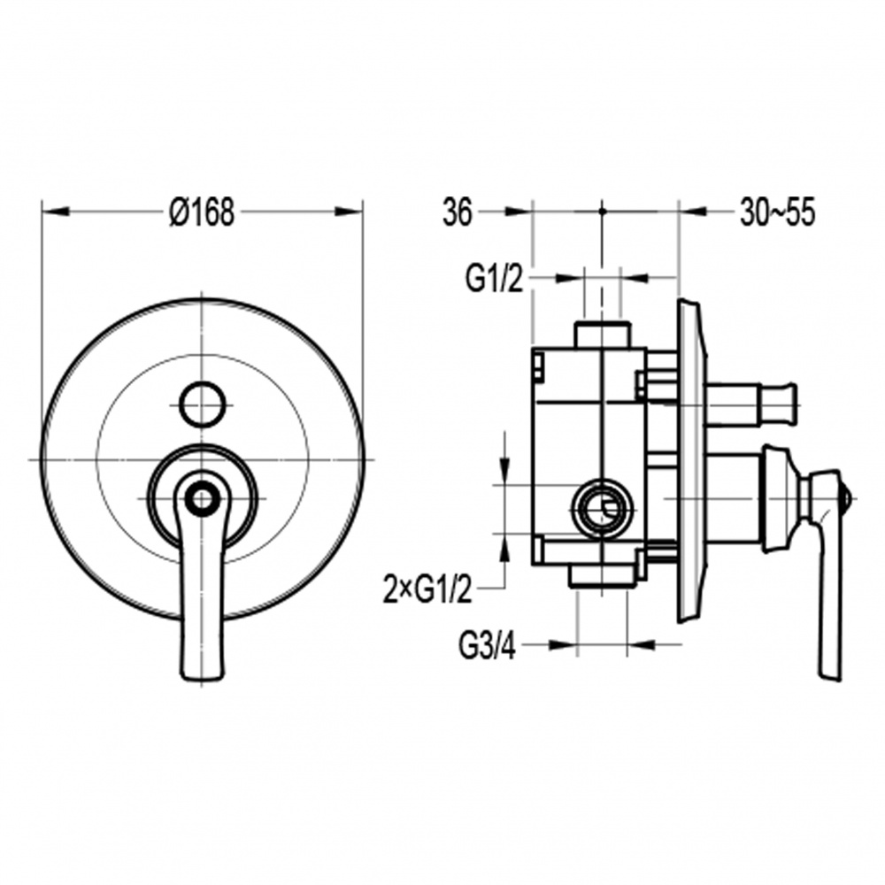 Встраиваемый смеситель для ванны/душа Swedbe Terracotta Art 2517 (на 2 выхода)