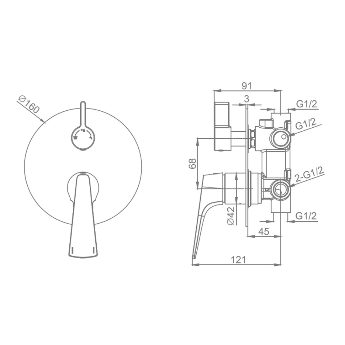 Встраиваемый смеситель для ванны и душа 3 режима Raglo хром R07.273