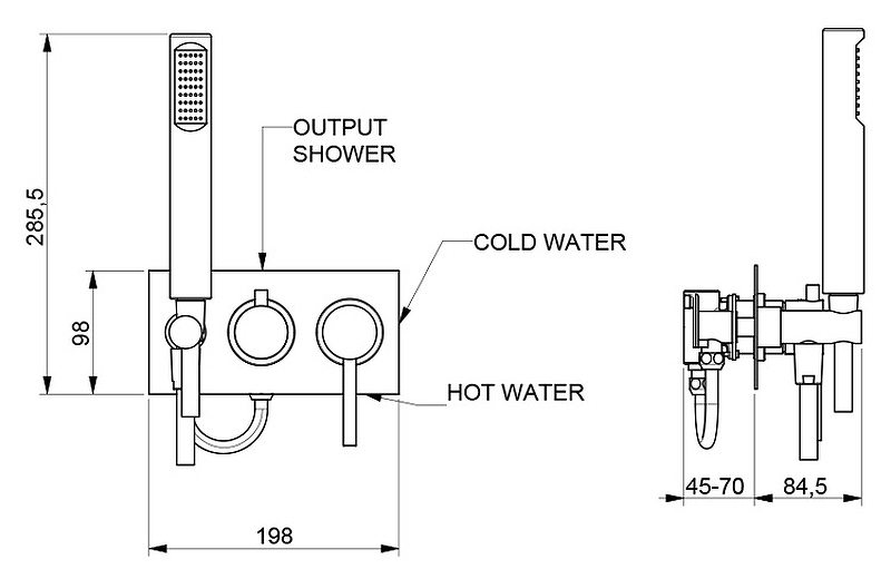 Комплектация: смеситель, внутренняя часть, душевая лейка, душевой шланг