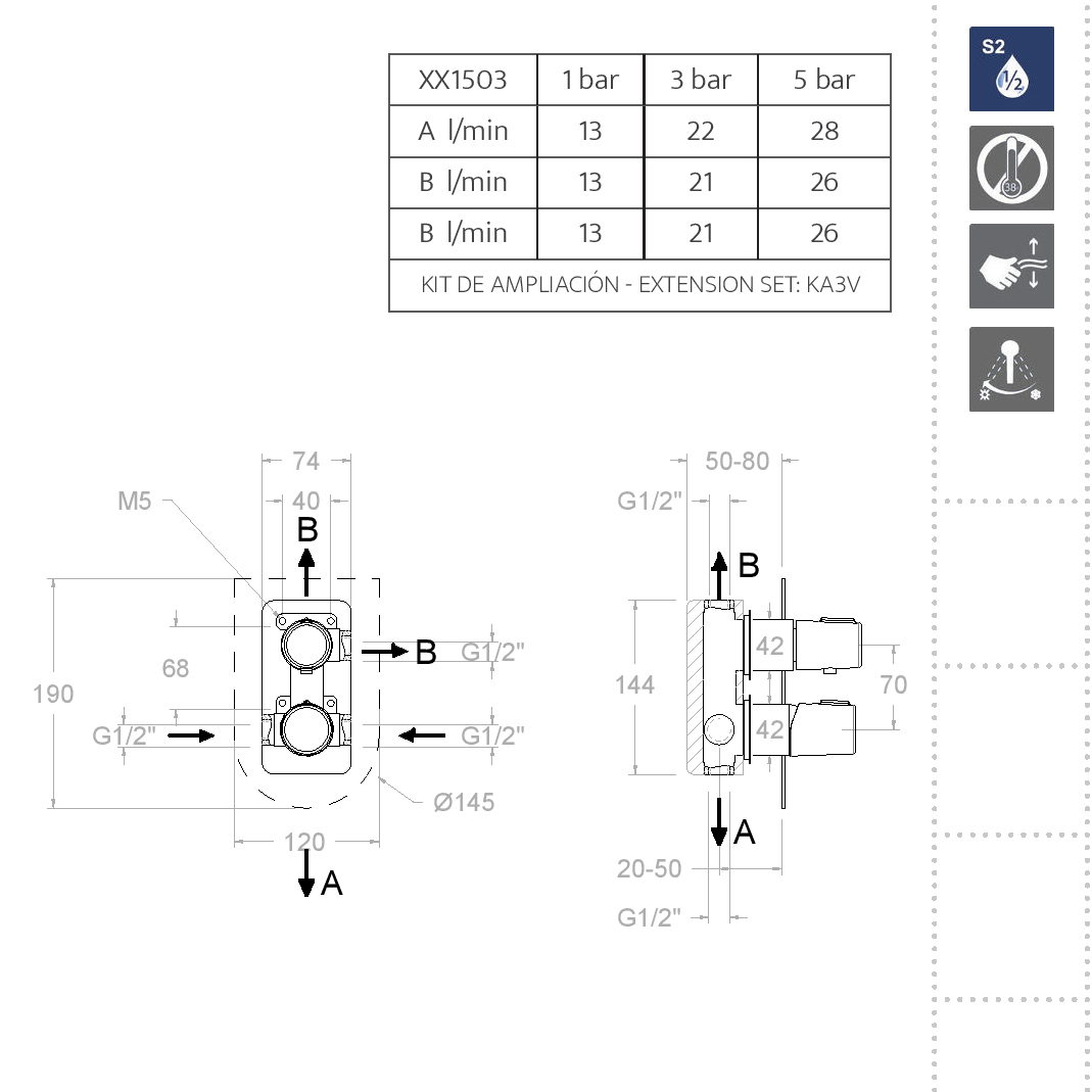 - Водосберегающая система S2 путем раскрытия ручки смесителя в два этапа.