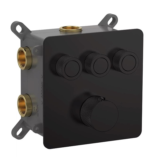 Встраиваемый смеситель-термостат на 3 источника AQUAme черный матовый AQM8812MB