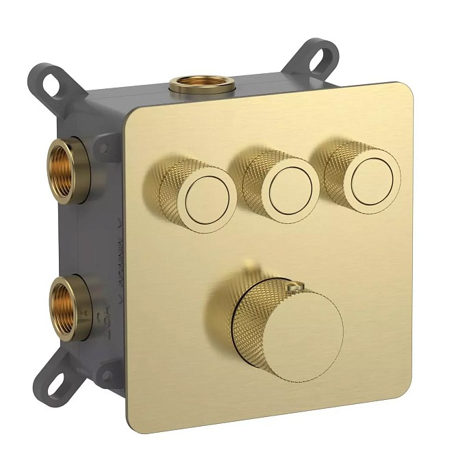 Встраиваемый смеситель-термостат на 3 источника AQUAme золото брашированное AQM8812BG
