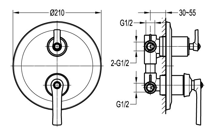 Встраиваемый трехпозиционный смеситель Cezares Liberty хром LIBERTY-F-VDIM3-01