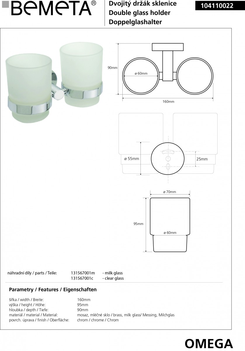 - Стакан двойной Bemeta Omega 104110022