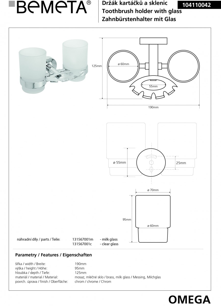 Стаканы с держателем зубных щеток Bemeta Omega 104110042