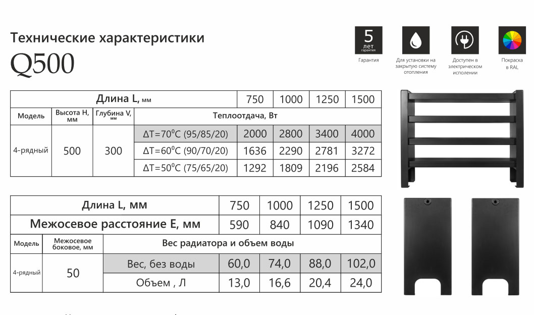 Стальной напольный радиатор Velar Q500 (H500) длина 750-1500