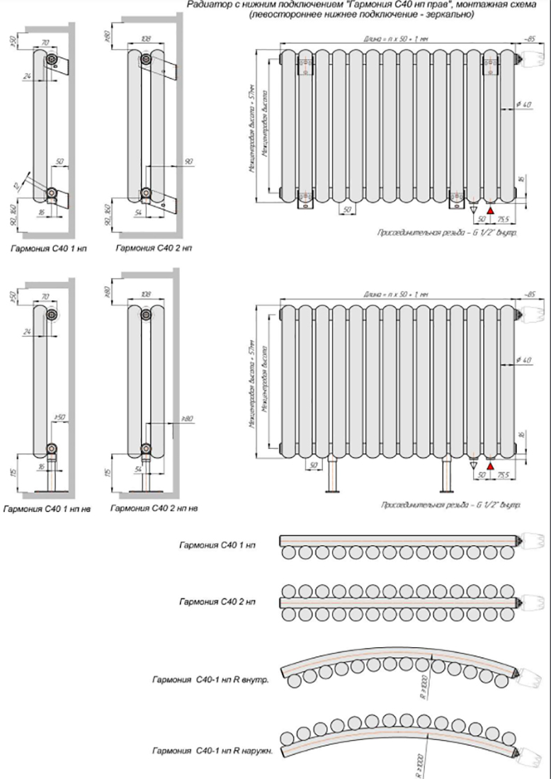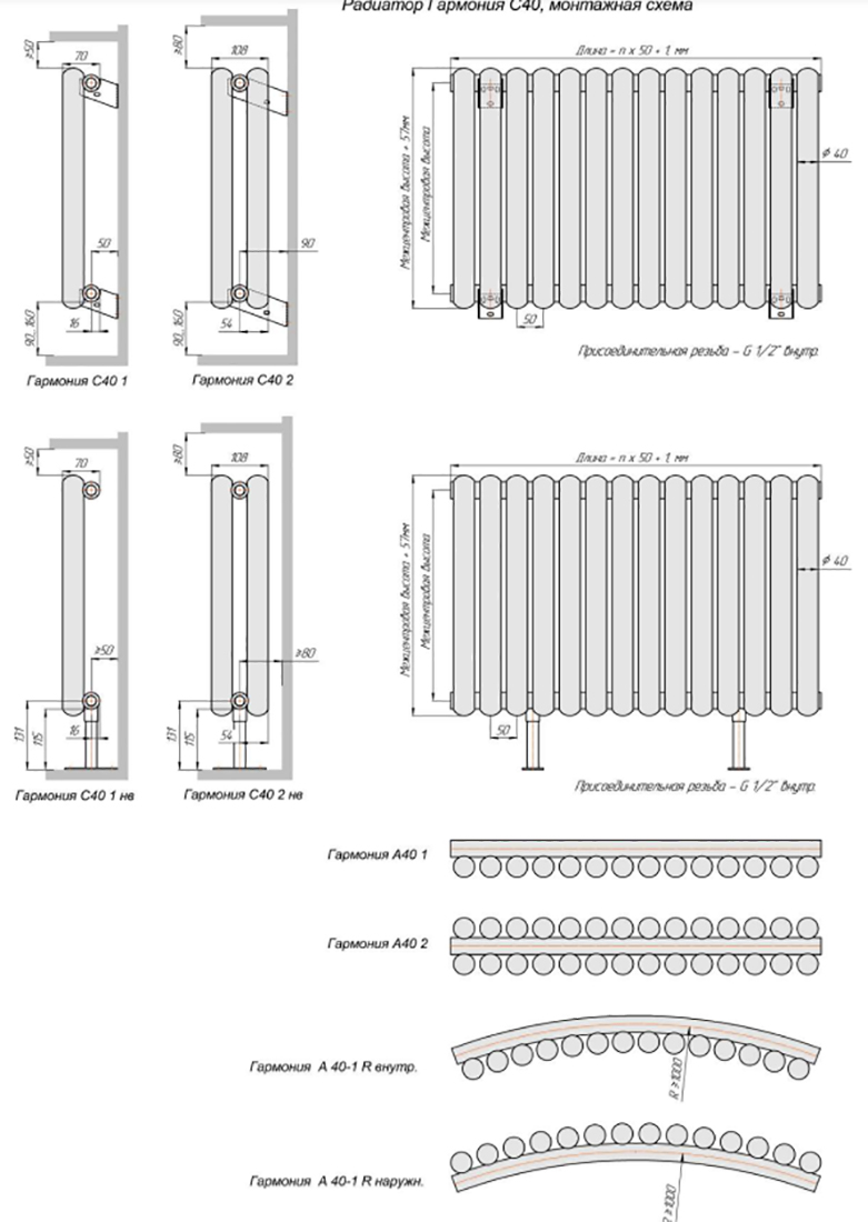 Радиатор серии Гармония С – это модифицированная версия классической Гармонии. Секция радиатора чуть меньше и представляет собой трубку, запаянную с двух сторон. Ключевое отличие модели Гармония С заключается в дизайне – трубчатые колонки выполнены с торцами полусферической формы. Существуют две вариации данных моделей: Гармония С40 и Гармония С25, с диаметром трубки 40 и 25 мм соответственно. Так же, как и классическая модель, Гармония С40 и Гармония С25 может быть выполнена с одним и двумя рядами вертикальных трубок по глубине прибора.