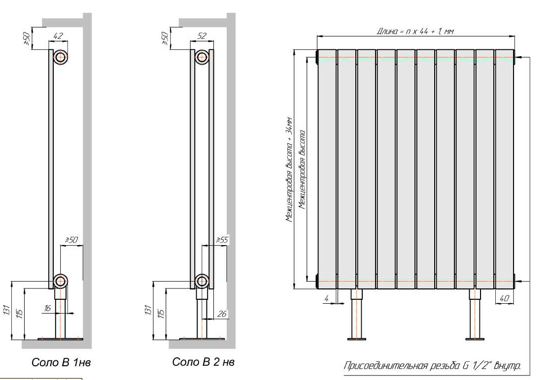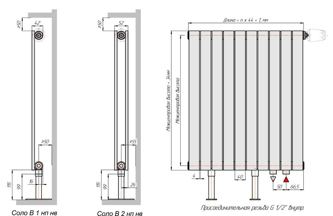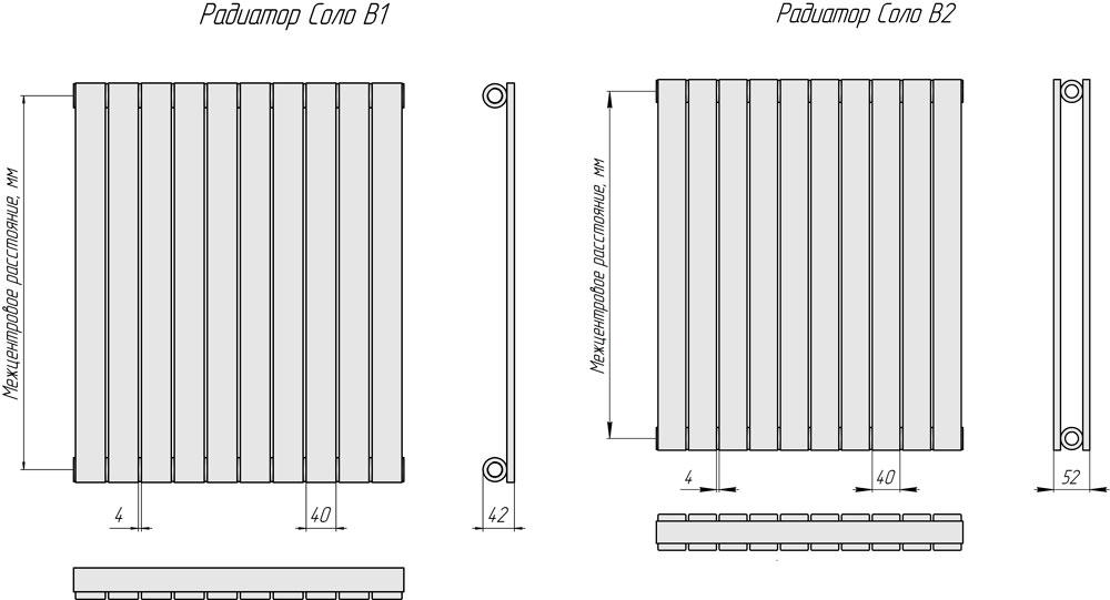 Существенным отличием данной модели является увеличенная более чем на 40% толщина стенки радиатора. Как результат, более высокое рабочее давление позволяет не только увеличить безопасность и долговечность прибора, но и устанавливать его в любые жилые помещения без каких-либо ограничений. Конструкция представляет собой прямоугольные трубы 40х10 мм, приваренные к коллекторам широкой стороной. Внешне радиаторы Соло напоминают панельные радиаторы, однако имеют более эстетичный и современный внешний вид без потери эффективности.