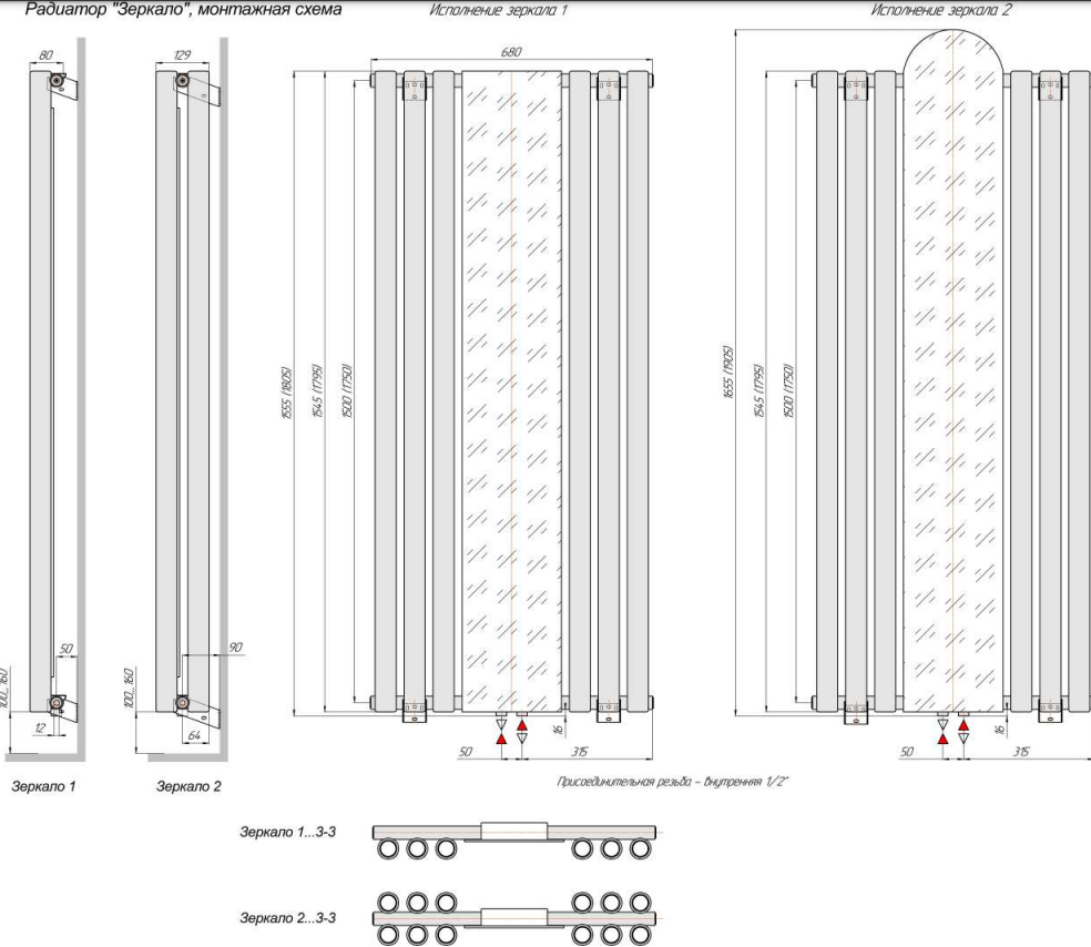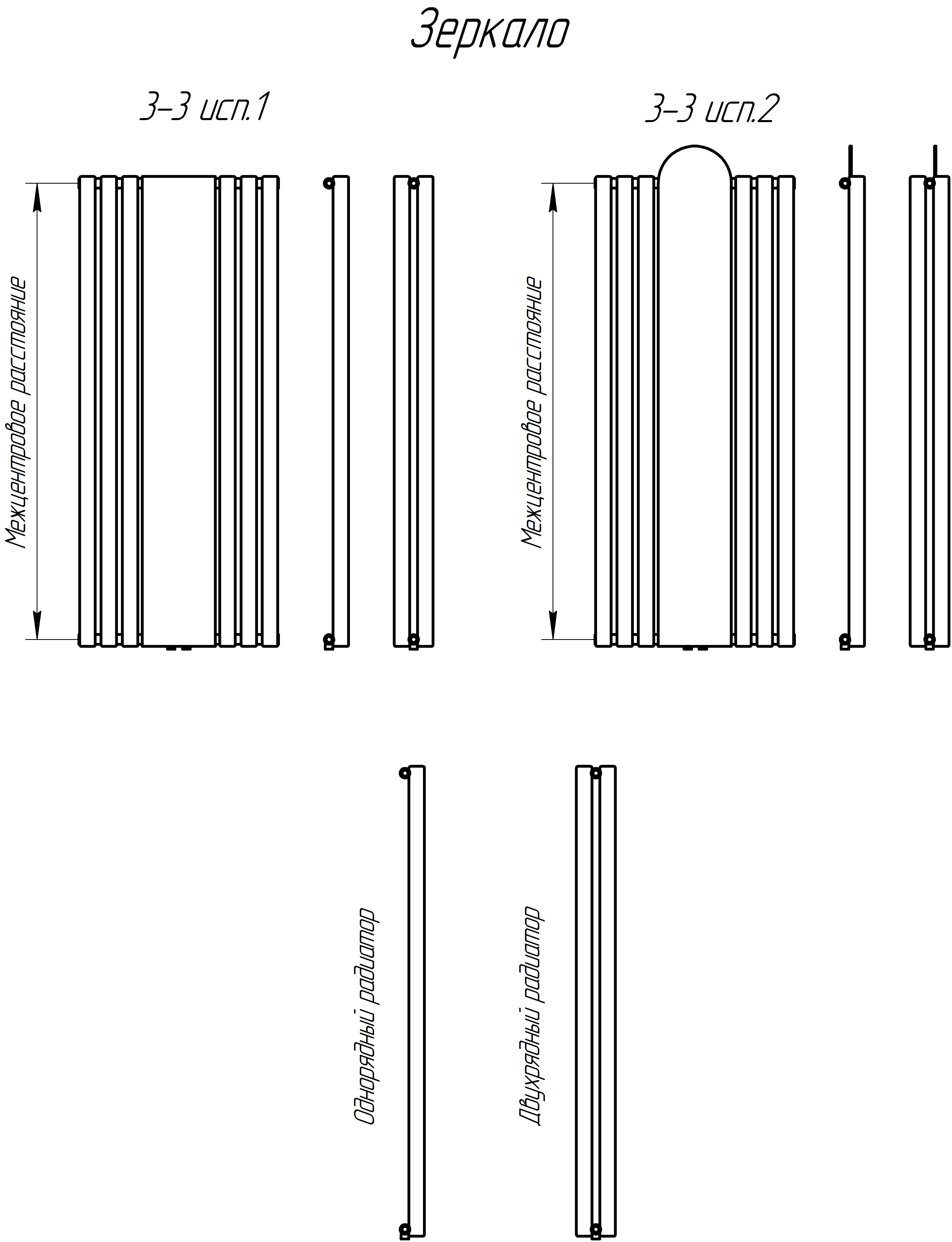 Стальной трубчатый радиатор KZTO Зеркало 1/2 3-3 исп1 1500/1750