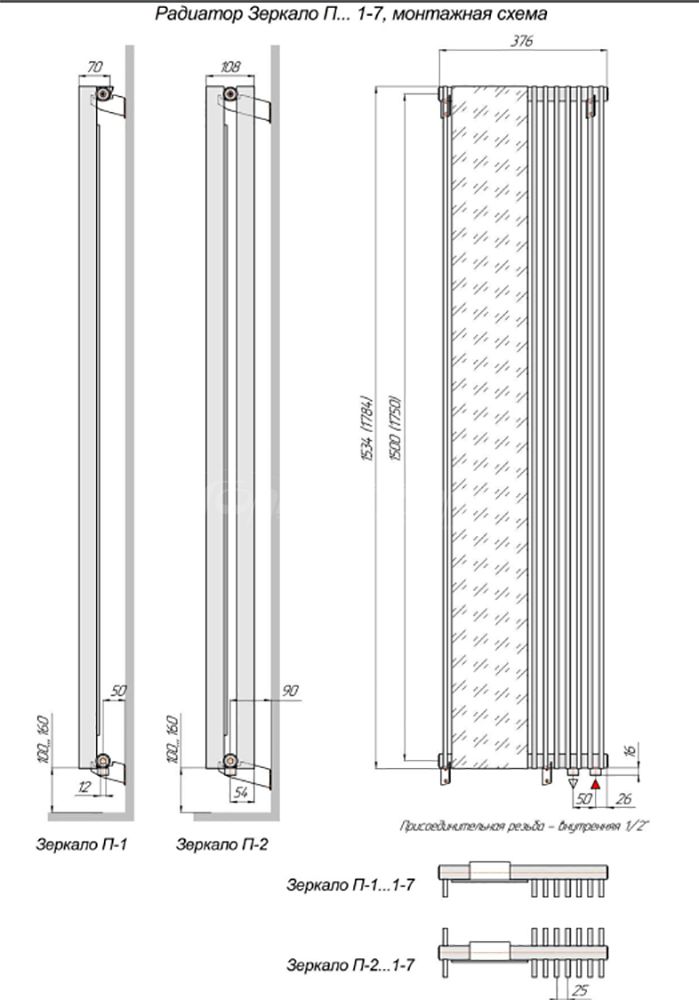 Стальной трубчатый радиатор KZTO Зеркало П 4-4 исп1 1500/1750