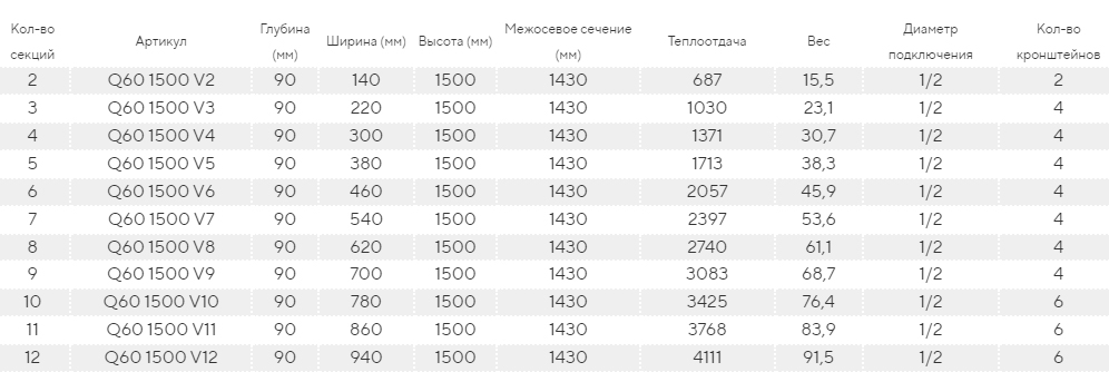 Стальной трубчатый радиатор Velar Q60 V (H1500) длина 140-940