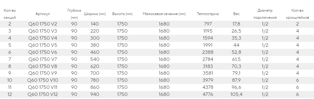 Стальной трубчатый радиатор Velar Q60 V (H1750) длина 140-940