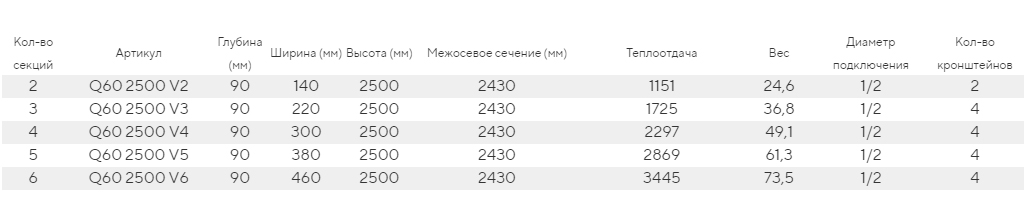 Стальной трубчатый радиатор Velar Q60 V (H2500) длина 140-460