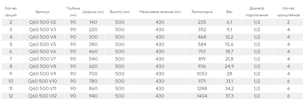 Стальной трубчатый радиатор Velar Q60 V (H500) длина 140-940
