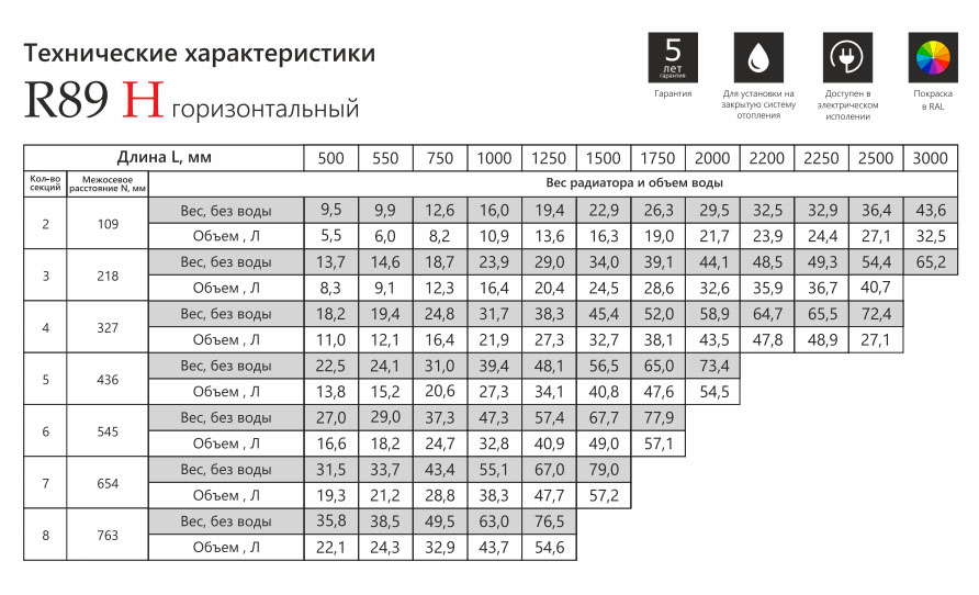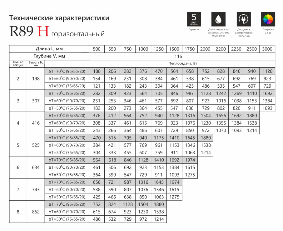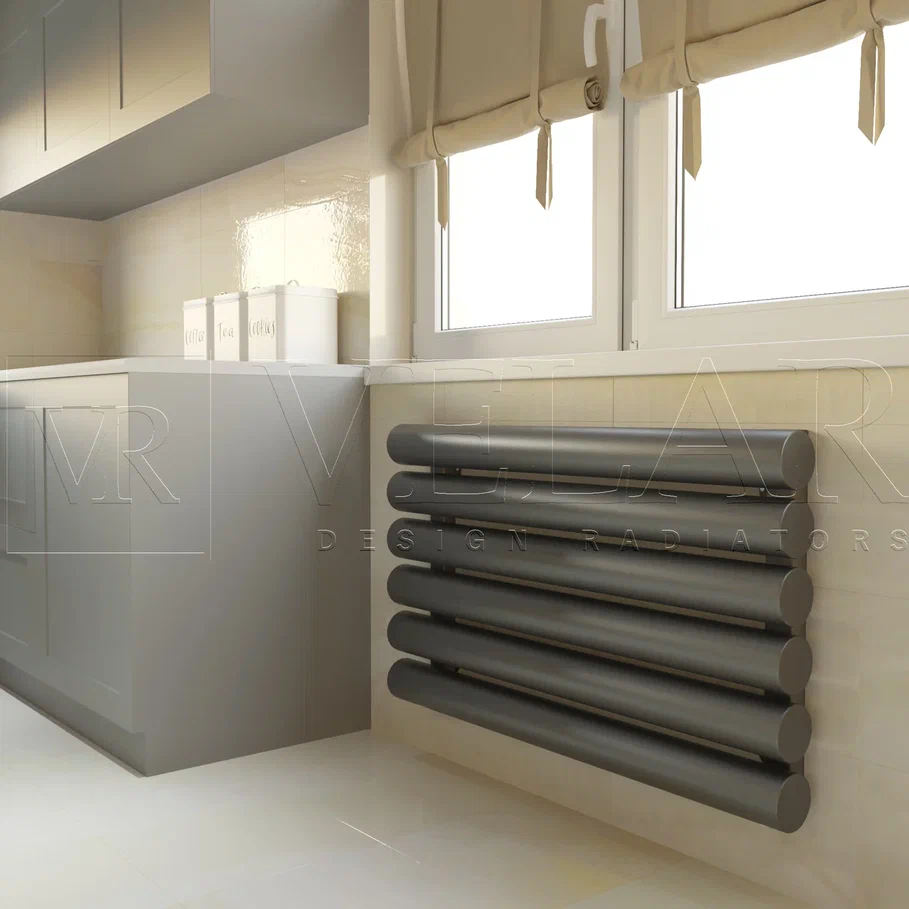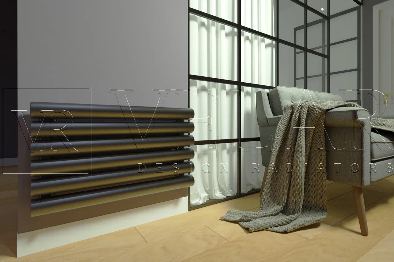 Velar R89H – горизонтальный стальной радиатор трубчатого типа c круглым сечением трубы, крупного диаметра. Покупатель может выбирать необходимое подключение, а также габариты, с количеством секций.