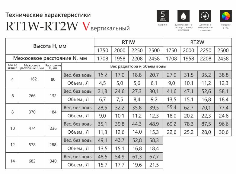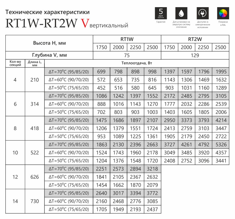 Стальной трубчатый радиатор Velar RT1W V (H1750) длина 210-730