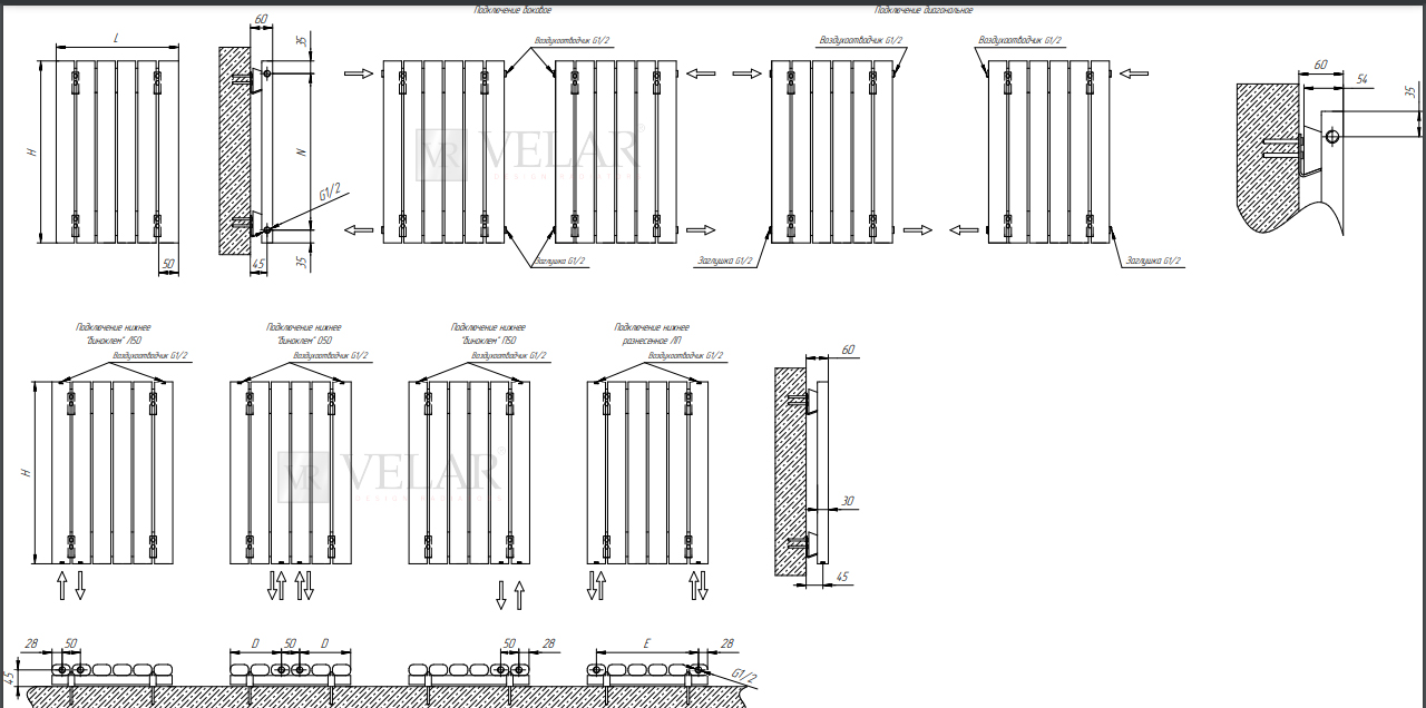 Стальной трубчатый радиатор Velar SP V (H750) длина 106-778