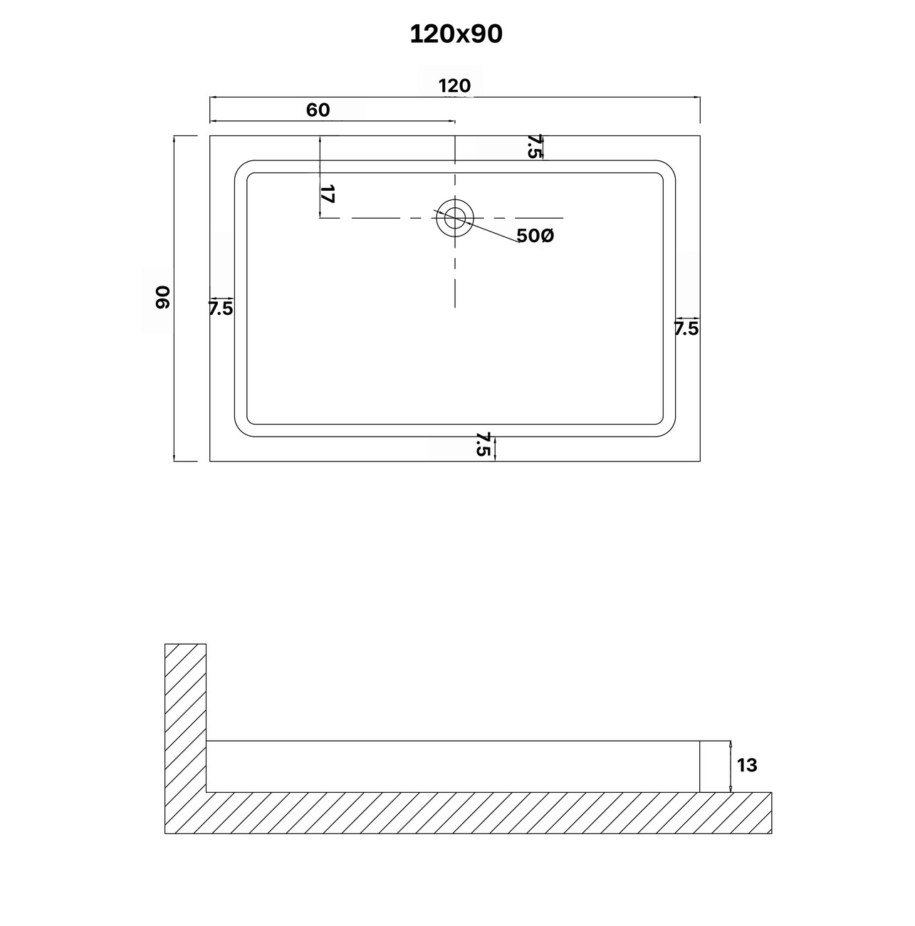 Душевой поддон прямоугольный Niagara (120х90х13 см) NG-P1290-14Q