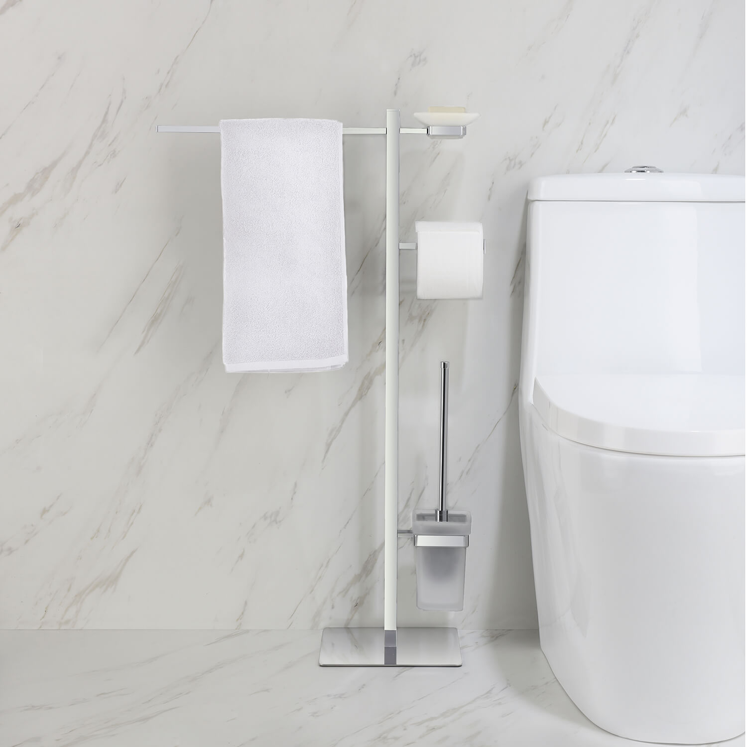 | Особенности | Стойка, щетка для туалета, колба стеклянная, мыльница, 2 держателя |