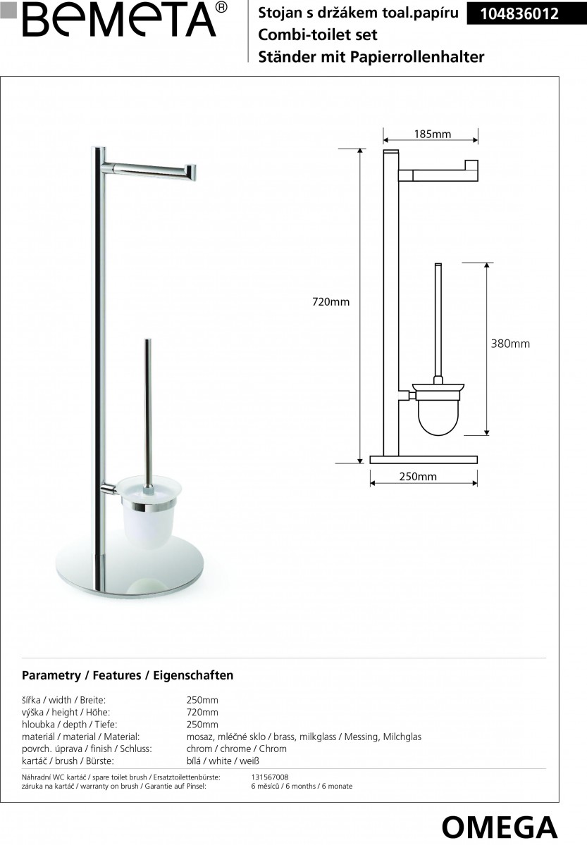 - Стойка с держателем туалетной бумаги и туалетной щеткой Bemeta Omega 104836012