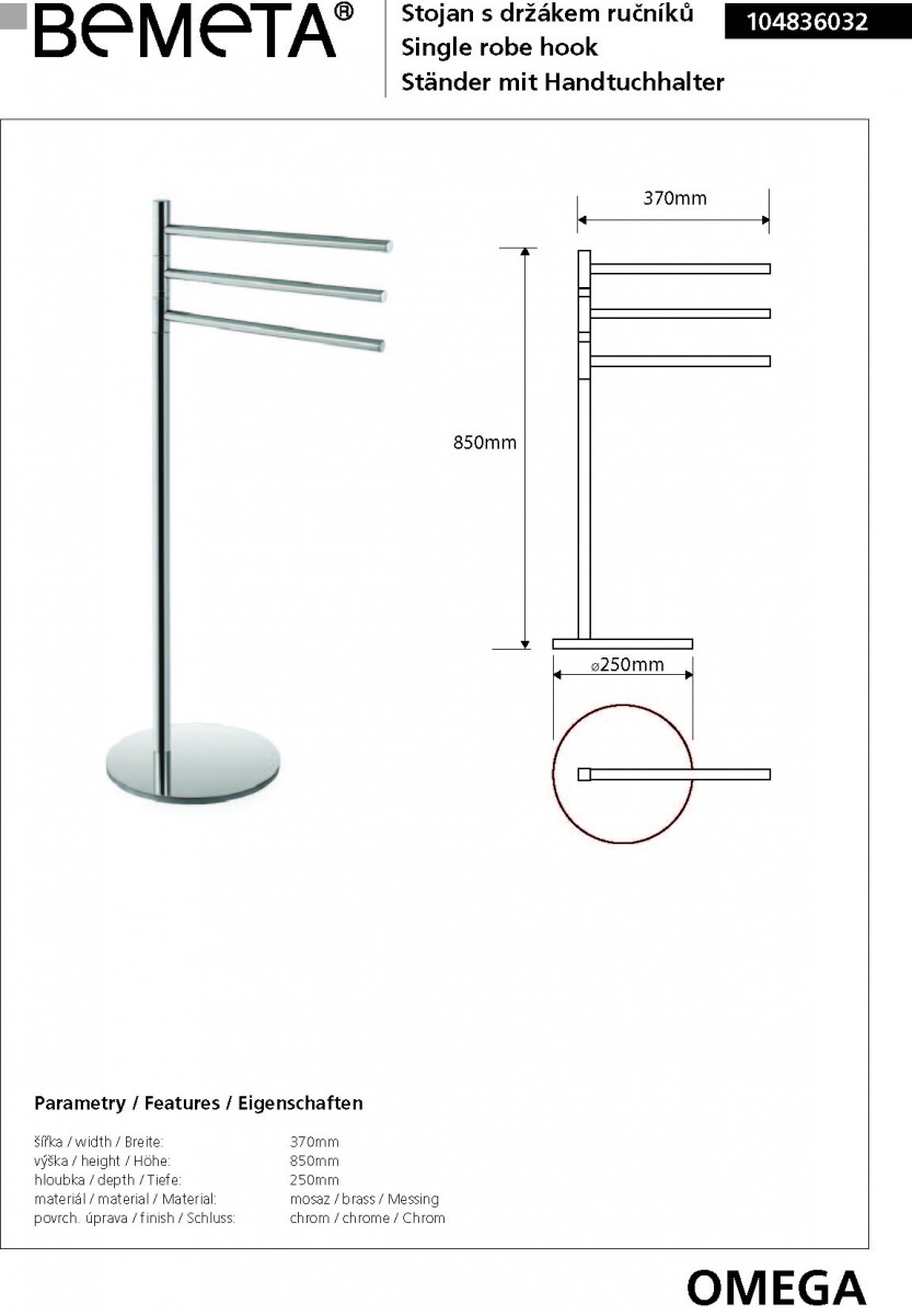 - Стойка с тройным поворотным полотенцедержателем Bemeta Omega 104836032