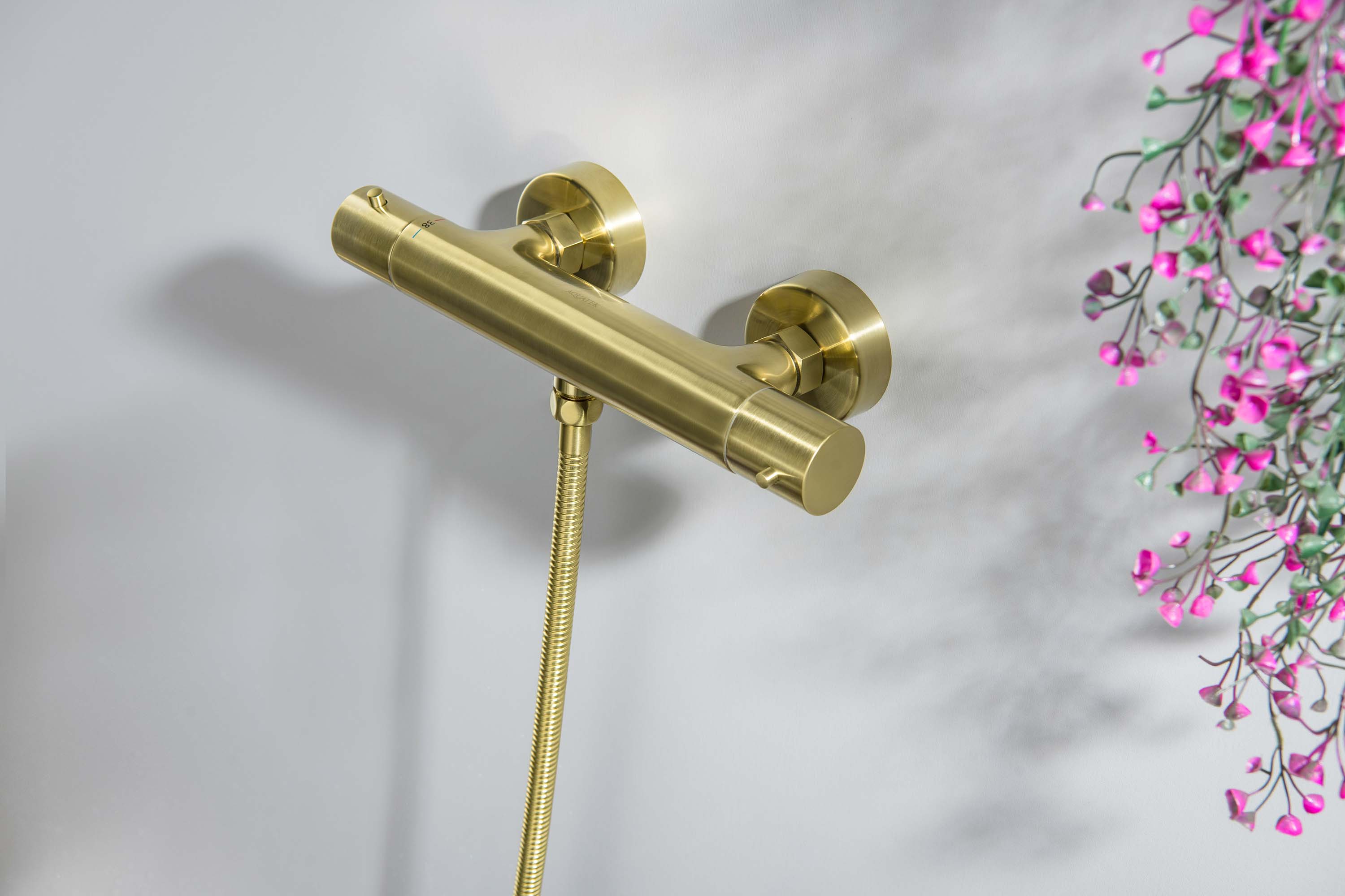 - Смеситель-термостат для душа Акватек Европа шлиф золото AQ1363BG