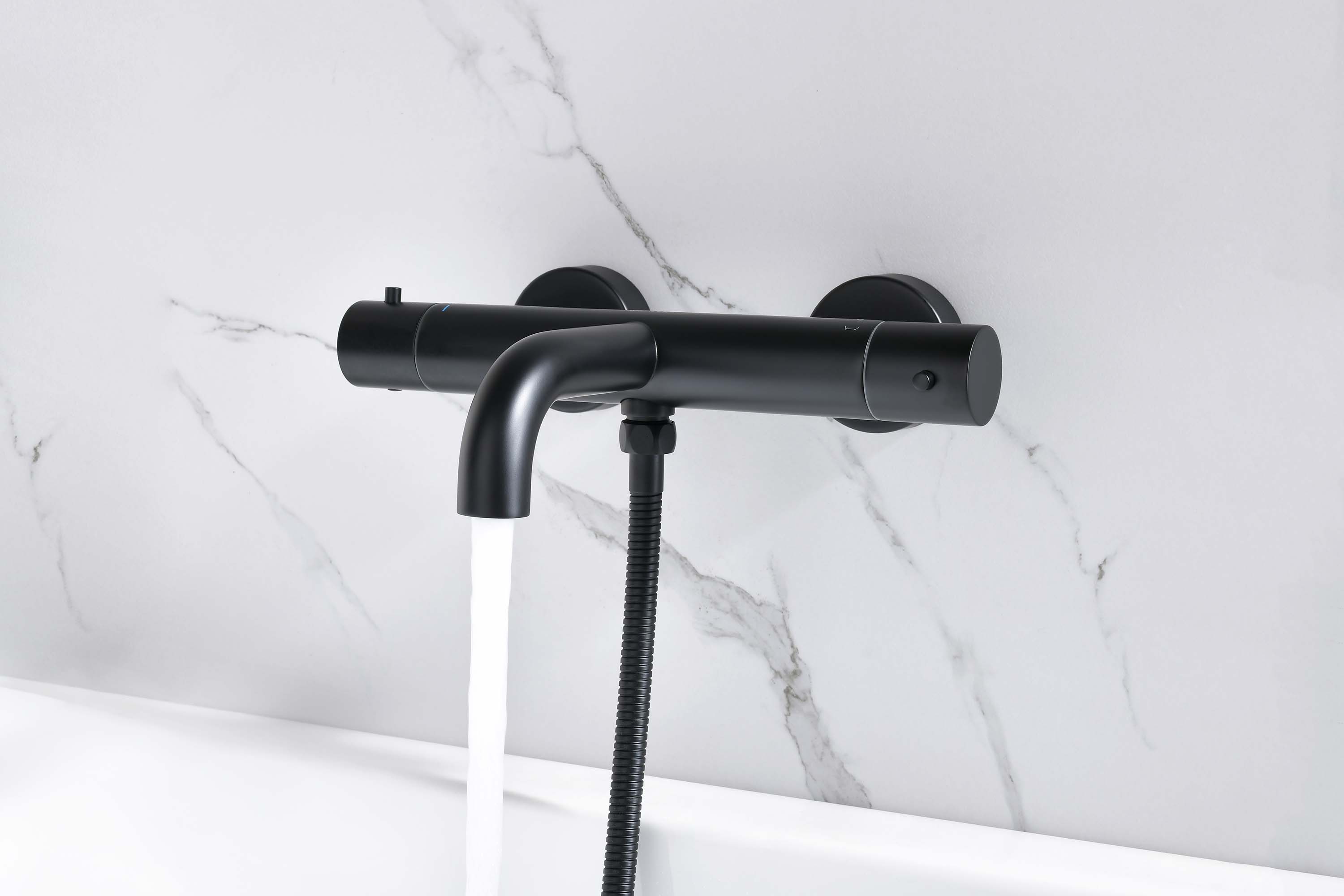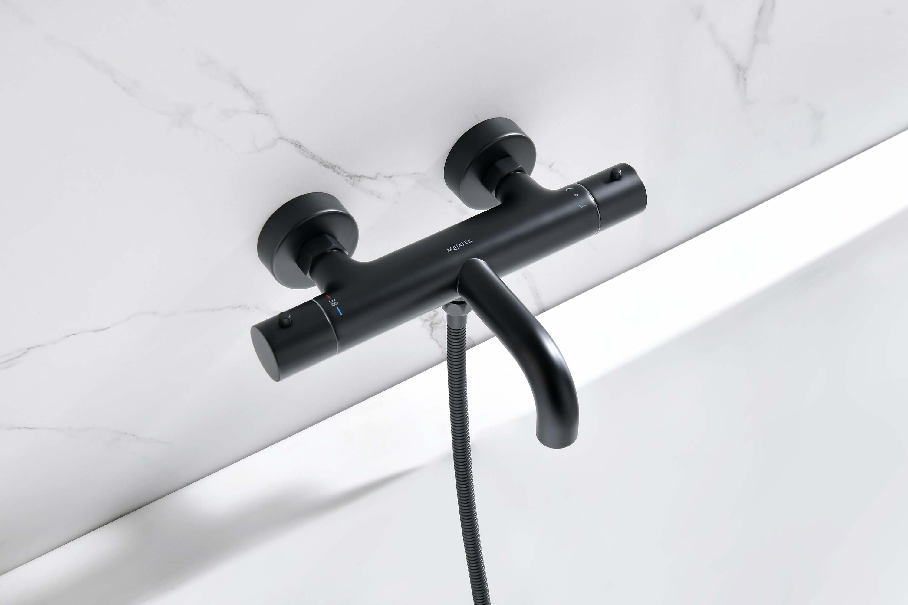 - Смеситель-термостат для ванны Акватек Европа черный матовый AQ1343MB
