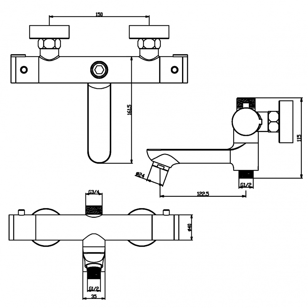 Смеситель-термостат для ванны Swedbe Hermes 9042B