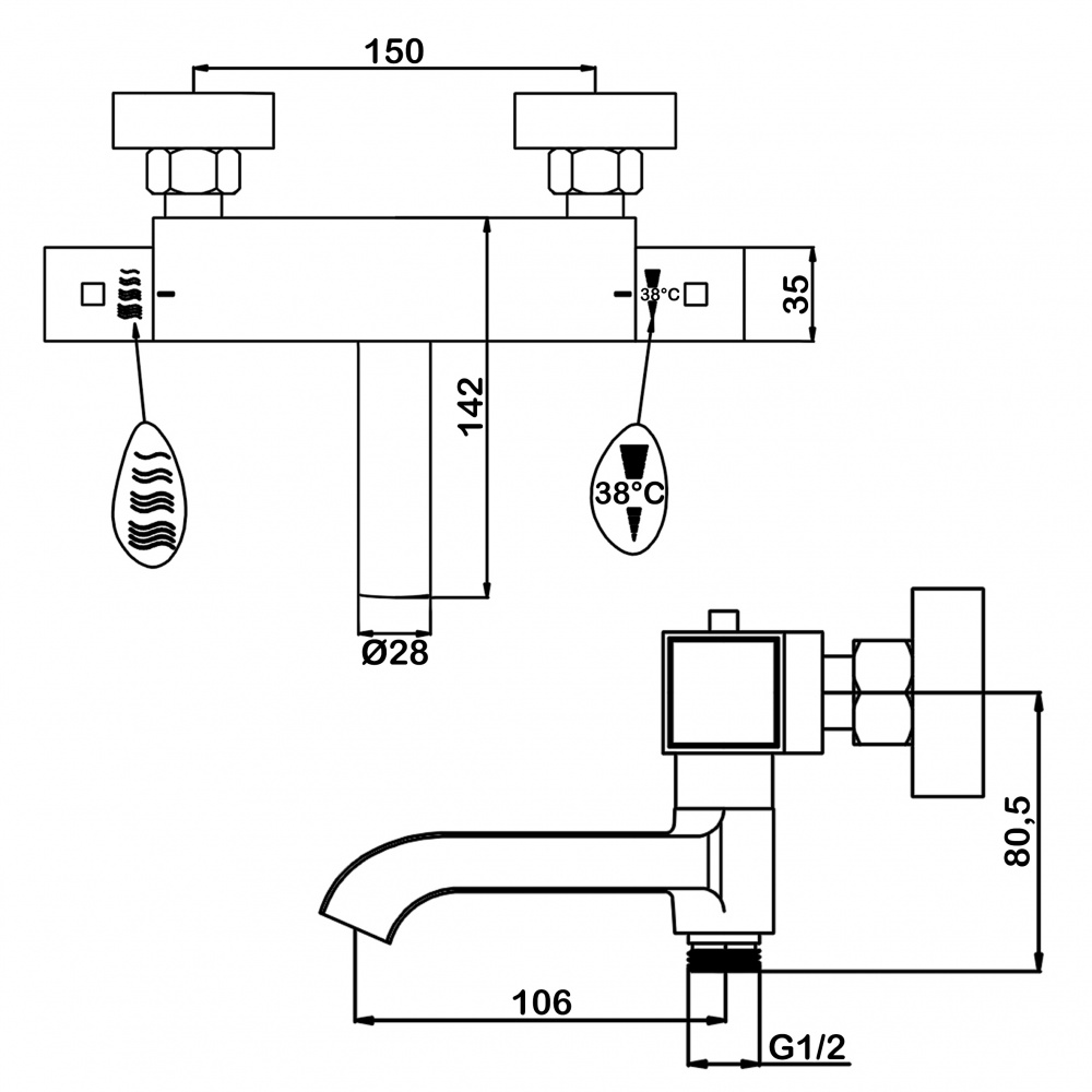 Смеситель-термостат для ванны Swedbe Mercury 9062B