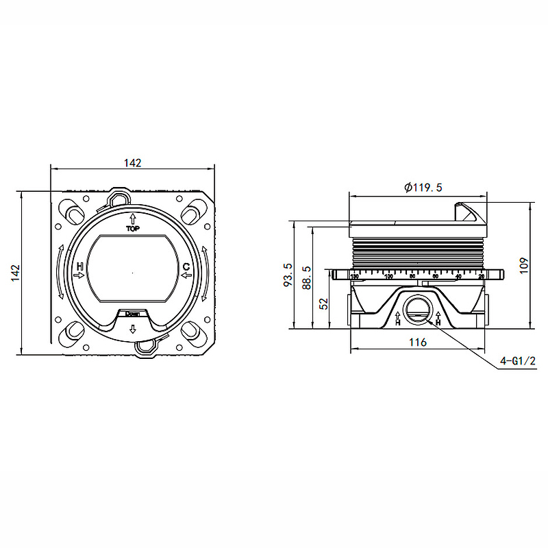 Встраиваемый термостат с регулировкой напора на 2 потребителя