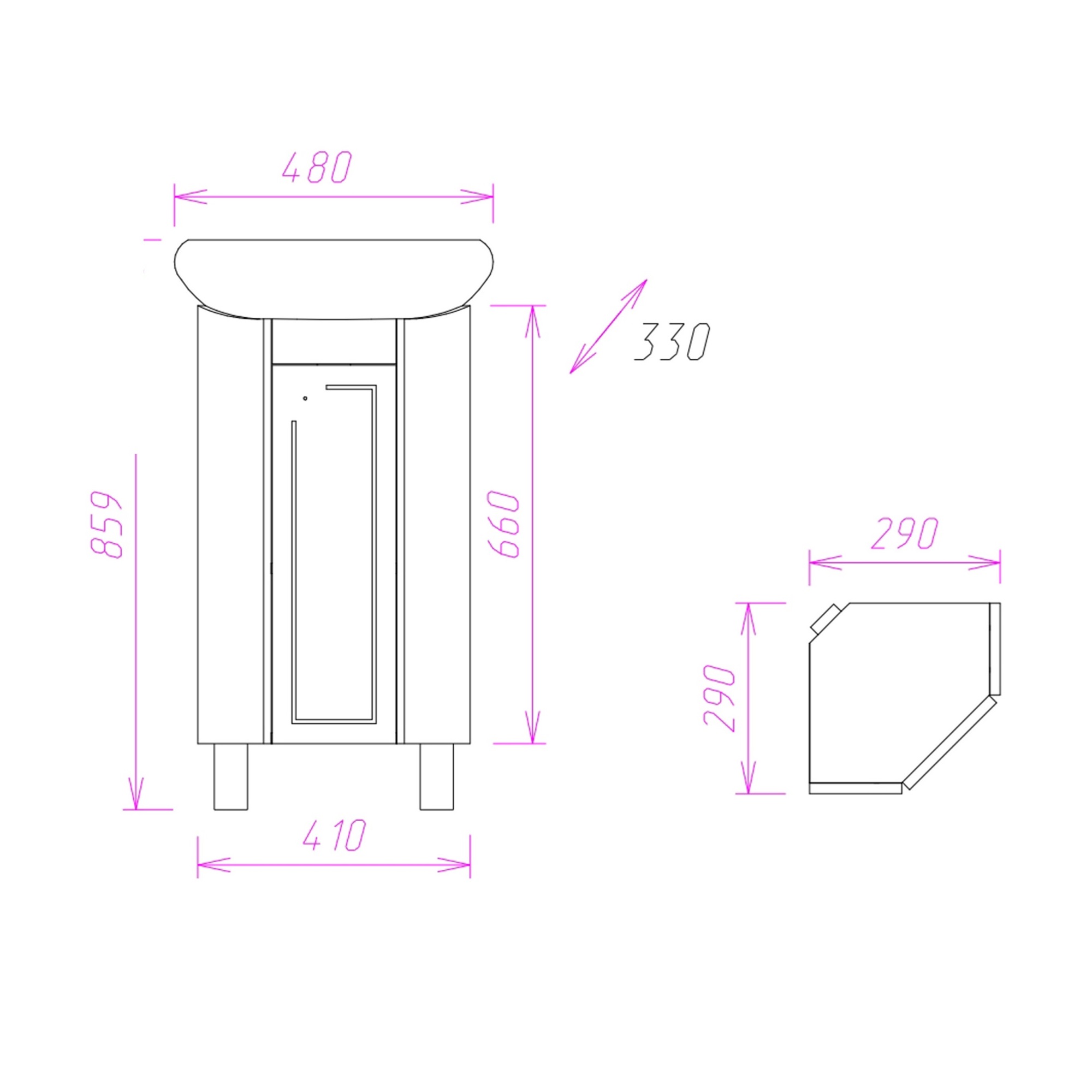 Тумба под раковину угловая напольная Onika Малютка 33 см (Santeri Радиан) белый 103301