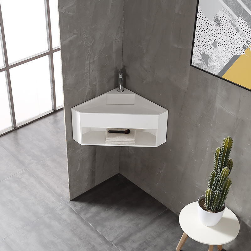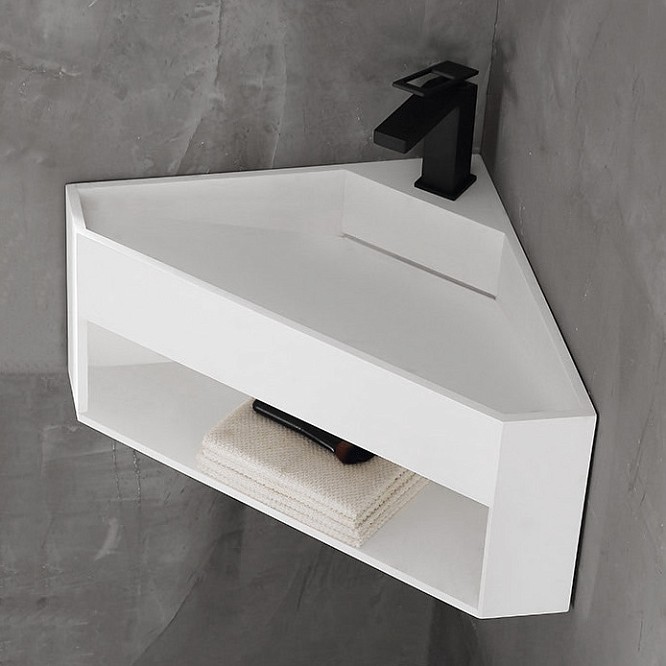 - Угловая тумба с раковиной подвесная ABBER Stein 50 см белый матовый AS2653