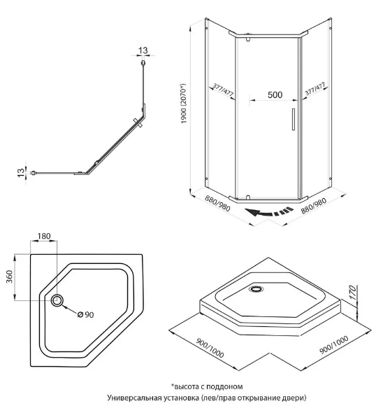 Размеры: 100х100х190 см