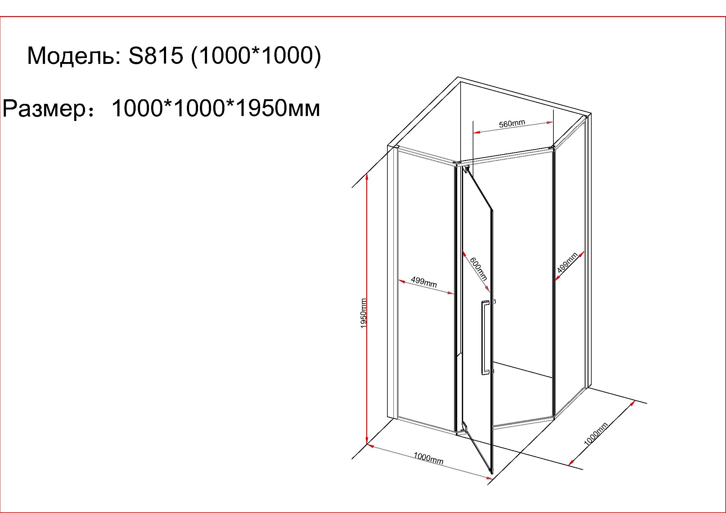 | Особенности | Допуск на установку 15 мм/ ручка металл 60 см |